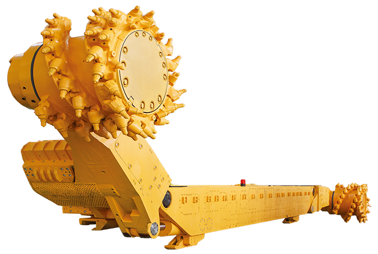 高適應(yīng)性矮機(jī)身、大功率、彎搖臂結(jié)構(gòu),過煤空間大,裝煤效果好,同時具有超強(qiáng)破巖能力和極高的牽引速度。